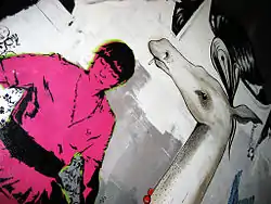Prominent international street artists such as Banksy (UK), ABOVE (USA), Fafi (France), D*FACE (UK), Logan Hicks,[7] Revok (USA), Blek le Rat (France), Shepard Fairey (USA) and Invader (France) have contributed work to Melbourne's streets along with visitors from all over the world, most prominently Germany, Canada, the United States, the United Kingdom and New Zealand.[8]