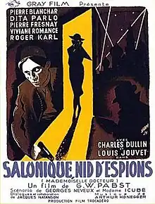 Street of Shadows (French: Mademoiselle Docteur or Salonique, nid d'espions) is a 1937 French spy film directed by G. W. Pabst.[1] An English-language version with exactly the same plot was filmed at the same time under the direction of Edmond T. Gréville, but with some changes in the cast. Dita Parlo remained as Mademoiselle Docteur, but Erich von Stroheim took over the part of the German spy chief. The English-language version was released in the United States under the title Under Secret Orders.[2] It was shot at the Joinville Studios in Paris. The film's sets were designed by the art directors Robert Hubert and Serge Piménoff.