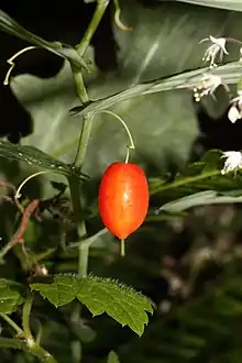The tender young shoots of this plant were eaten by some aboriginal peoples as a salad green, but most considered the plant and berries poisonous.[8] The shoots are sweet with a cucumber-like flavor. The berries are reported to be juicy and sweet, with a watermelon-like flavor.[9] The juice of the berries was used as a soothing treatment for burns by Native American.