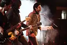 ![]() Strings performing at the Etihad Runway in June 2010. From left to right are; Faisal Kapadia and Bilal Maqsood. | |