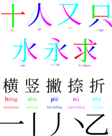 - In traditional characters, 橫豎撇捺折.