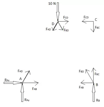 This type of method uses the force balance in the x and y directions at each of the joints in the truss structure.