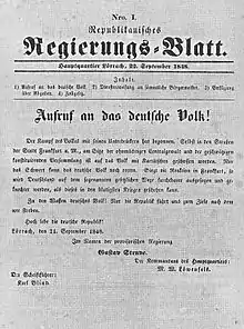 Republican government sheet No. 1 in the name of the "provisional government" of Gustav Struve