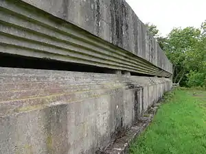 The village and beach were used as a training area before the D-Day landing in the Second World War. On top of Redend Point, a small sandstone cliff which splits the beach in two at high tide, is Fort Henry. Built in 1943 by Canadian engineers, it is 90 feet (27 m) long, with 3-foot-thick (0.9 m) walls and an 80-foot-wide (24 m) recessed observation slit. Seven Valentine tanks fitted with duplex drive equipment sank in the bay during Exercise Smash in April 1944, resulting in the death of six soldiers.[18] On 18 April 1944, King George VI, General Sir Bernard Montgomery and General Dwight D. Eisenhower, met here (at the Knoll House Hotel) to observe the training troops and discuss the plans for the coming battle.[19]