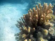 Stylophora pistillata, commonly known as hood coral[2] or smooth cauliflower coral,[1] is a species of stony coral in the family Pocilloporidae. It is native to the Indo-Pacific region and is commonly used in scientific investigations.