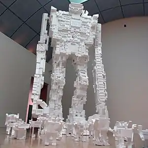 Styrobot is the name applied to a number of site-specific sculptural assemblages created by the artist Michael Salter. Robotic figures puzzled together from discarded polystyrene packing forms, Styrobots have risen ceiling-high to dominate their space. Although Styrobots are often intimidating in size, their postures are generally non-threatening, at times meditative.[1][2][3][4]