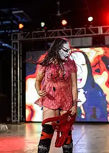 On the October 29 episode of Impact!, Riggs made an appearance without her makeup, introducing herself as Susie.[35] Susie continued making appearances over the following months, having no recollection of her past but slowly regaining her memories after coming across Havok and Father Mitchell, being coerced to join them.[36][37][38] On the January 28, 2020 episode of Impact!, Rosemary invited Susie to a "friendly competition" against her the next week, where they fought each other to a double count-out and continued to brawl backstage, ending with Rosemary wrapping a noose around Susie's neck and resurrecting Su Yung.[39][40] The next couple of weeks had her send both Father Mitchell and Havok to the Undead Realm.[41][42] On the March 24 episode of Impact!, it led to a fight between Yung and Havok that saw both of them betrayed by Father Mitchell and sent to the Undead Wasteland, only for them to escape thanks to Rosemary and kill him.[43]
