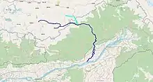 Tsari Chu (Chinese: 洛河; pinyin: Luò hé, "Lo River"; known as Lensi River in Arunachal Pradesh)[7] rises near the village of Chosam in Tibet and flows east for about 25 miles till the town of Migyitun, where it turns south. It merges with the Subansiri at Gelensiniak.[8][9] The district of Tsari, consisting of the Tsari Chu valley and its vicinity, is considered holy ground by the Tibetans. No animals are killed and no food is grown in these areas, with the exception of Migyitun.[10] The holiness comes from the Dakpa Sheri mountain peak at the centre of the Tsari district, considered the home of the Buddhist Tantric deity Demchok (Chakrasamvara) and his consort Dorje Phagmo (Vajravārāhī). The pious Tibetans used to carry out a wide circumabulation (called rongkor or "ravine circuit") around the mountain once every 12 years, during the monkey year. They traversed the valley of the Tsari Chu river until its junction with Subansiri, and returned via the Subansiri and Yume Chu valleys.[11] The last such circumambulation took place in 1956, after which the Sino-Indian border conflict has put an end to the practice.