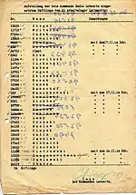 The expansion of Flossenbürg concentration camp led to the establishment of subcamps, the first of which was established at Stulln in February 1942 to provide forced labor to a mining company. Many of them were located in the Sudetenland or across the border in the Protectorate of Bohemia and Moravia.[1] The vast majority were established after 1 March 1944.[2] Initially, the subcamps were not involved in armaments production, which changed in the second half of 1944 due to a large influx of available prisoners and the activities of the Jägerstab, which sought to increase German aircraft production.[1] The Jägerstab's dispersal of aircraft production spurred the expansion of the subcamp system in 1944[3] and resulted in the establishment of the two largest of the subcamps, at Hersbruck and Leitmeritz.[1] In the second half of 1944, 45 new camps were created, compared to three camps in the previous six months. The staffing these new camps was increasingly filled by Luftwaffe soldiers, Volksdeutsche SS men (ethnic Germans from outside the Reich), and SS women, for the subcamps containing female prisoners.[4] By April 1945, 80% of the prisoners were at the subcamps.[5] Of all the concentration camp systems, Flossenbürg's subcamp system was one of the three most important to the economy of Nazi Germany, along with Dachau's and Mauthausen's.[6]
