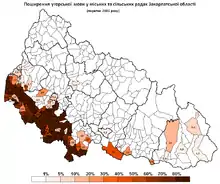 - Про кількість та склад населення Закарпатської області за підсумками Всеукраїнського перепису населення 2001 року [About the number and composition of the Transcarpathian oblast according to the results of the National Census of 2001] (in Ukrainian). Archived from the original on 30 April 2009.