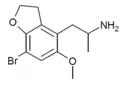 ![]() | DOB-FLY | 219986-75-1 | H | H | 2-aminopropyl | 5,6-dihydrofuro[5,6-f] | - | bromo | 2,3-dihydro |