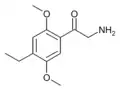 Substituted cathinones, which include some stimulants and entactogens, are derivatives of cathinone. They feature a phenethylamine core with an alkyl group attached to the alpha carbon, and a ketone group attached to the beta carbon, along with additional substitutions.[1][2][3][4][5] Cathinone occurs naturally in the plant khat whose leaves are chewed as a recreational drug.[6]