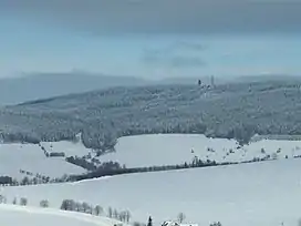 Suchý vrch (German: Dürrer Berg; Polish: Suchy szczyt; 995 metres) is the highest (double-peaked) mountain of the southern part of the Orlické Mountains in the Czech Republic. Located on the historical border between Bohemia and Moravia, and right on trace where runs line of drainage divide of main European watershed (Elbe – North Sea and Danube basin – Black Sea).