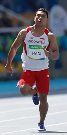 Sudirman Hadi (born 9 March 1996) is a sprinter from Indonesia. He competed in the 100 m event at the 2016 Summer Olympics and qualified to the main heat by finishing second in his preliminary heat. He then finished last in his heat, with a time of 10.70.[1]