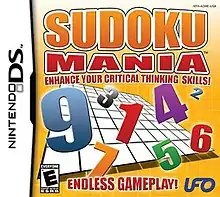Sudoku Mania is a 2006 sudoku puzzle game developed by Frontline Studios and published by UFO Interactive Games. Released on June 30, 2006, Sudoku Mania received "generally unfavorable" reviews from critics, having a score of 25 out of 100 on review aggregator Metacritic.[1] Critics criticized the game's controls for being "disappointingly" "simplistic" and "obtuse".[2][3]
