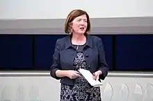 Gray has been portrayed as relatively unknown but once highly influential,[51] and has been described as "an enigma".[16] In 2015, a profile[52] by Chris Cook,[53][54] then policy editor for the BBC's Newsnight, claimed that she was "notorious… for her determination not to leave a document trail", had advised special advisers how to destroy emails through "double-deletion" and made at least six interventions "to tell departments to fight disclosures under the Freedom of Information Act".[27][55][56] She was described by former prime minister Gordon Brown, in his memoir, as someone who could be counted on for "wise advice when – as all too regularly happened – mini-crises and crises befell".[32] Rajeev Syal in The Guardian described her as "an uncompromising operator".[57] Political journalist Andrew Gimson wrote: "All power to the Civil Service is her modus operandi. She owes her allegiance to the permanent government and the deep state."[18] Former cabinet minister Oliver Letwin wrote of her: "Unless she agrees, things just don’t happen. Cabinet reshuffles, departmental reorganizations, the whole lot – it's all down to Sue Gray".[58][59]