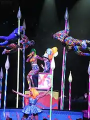 Maroon 5 performed "Sugar" in Puerto Rico for the first edition of Victoria's Secret Swim Special, which aired on February 26, 2015.[63] They also played the song in various appearances, such as the eighth season of The Voice[64] and the television talk shows Jimmy Kimmel Live!;[65] and Alan Carr: Chatty Man, respectively.[66] On November 19, 2016, the band played "Sugar" for the third annual Airbnb Open Spotlight at downtown Los Angeles.[67] The band performed the song live for their worldwide tour, Maroon V Tour (2015–2018).[68]