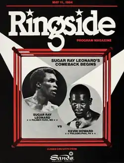 Former WBC welterweight champion "Sugar" Ray Leonard announced his comeback to boxing in December 1983 after having retired the previous year following a retina injury.[1] The following month, Leonard's opponent was officially announced to be little-known fringe contender Kevin Howard. In anticipation for a future fight with then-middleweight champion Marvin Hagler, Leonard decided to fight Howard as a light middleweight, a division where he had only one prior fight, rather than return to the welterweight division he had spent the majority of his career. Leonard also insisted on using thumb-less gloves as a precaution against eye injuries.[2] Originally, the fight was scheduled to take place on February 25, 1984, however, the Massachusetts Boxing Commission required that Leonard get examined by a retinal specialist whom declared that while his surgically repaired left retina was fine, his right retina was determined to be loose resulting in the fight immediately being postponed.[3] Leonard would then undergo cryotherapy treatment on his right after-which it was determined his right eye had healed enough to put the fight back on albeit with a new May 11 date.[4]
