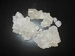 Magnification of grains of refined sucrose, the most common free sugar.