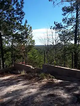 Sugarloaf Mountain near the town of Patrick (Chesterfield County, South Carolina) is an unusual hill, known locally as "The Mountain," that towers a hundred feet above the surrounding terrain.[3] This site is located within the Sand Hills State Forest, just off US highway 1, near Patrick, South Carolina in the Carolina Sandhills region of the U.S. Atlantic Coastal Plain province.