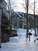 In the summer of 1959 the base area was relocated some 250 feet (76 m) down the hill. A two-story lodge was built and another T-bar added to service the beginner area.[6]