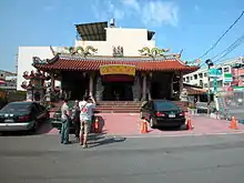 In later years, a number of villagers claimed to have had supernatural experiences relating to the heroic pilot.[2] In 1971, at the location of the crash site, a temple was built in Tainan in Sugiura's honour, called the Flying Tiger or Chen-an Temple.[3] In 1993 a larger temple building was constructed, to cater for the many visitors from Japan. Temple manager Hsieh Chu-ji says all requests are granted, "except for wealth."[2] Daily ceremonies occur, in which worshipers play the Japanese national anthem Kimigayo and light cigarettes to honor Sugiura. In the evening the gunka Umi Yukaba is played.[4]