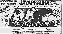 Suhaag (transl. Marriage) is a 1994 Indian Hindi-language action film directed by Kuku Kohli starring Ajay Devgn, Akshay Kumar Karishma Kapoor, Nagma in lead roles. Suhaag was one of the highest-grossing Bollywood films of 1994 and was the first film where actors Ajay Devgn and Akshay Kumar shared screen space. It was after a decade that the duo went on to appear in Khakee (2004) and then in Insan (2005) the very next year.