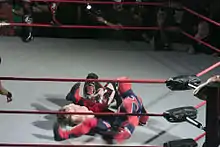 Suicide is a professional wrestling persona, used by multiple wrestlers in Impact Wrestling (formerly Total Nonstop Action Wrestling; TNA). Suicide first appeared as a fictional character from the video game TNA Impact!. In December 2008, the Suicide character was introduced on television as a real-life wrestler. Originally portrayed by Frankie Kazarian, Christopher Daniels held the role for a time in early 2009 and went on to win the X Division Championship.[2] In June 2010, Kiyoshi became the third man to use the gimmick.[3] In October 2010, the gimmick was dropped, but made a brief return in January 2011, once again being portrayed by Christopher Daniels,[4] before being dropped once again in April 2011. Suicide returned to television in May 2013 portrayed by T. J. Perkins.[5] Austin Aries wrestled under the Suicide gimmick on the episode of Impact Wrestling which aired on June 27, 2013 and won the TNA X Division Championship.[6] Suicide was "revealed" to be Perkins, who claimed Aries stole his ring gear, on the June 30, 2013, episode of Impact Wrestling. His ring name was changed to Manik, using a slightly altered version of the Suicide gear, with new music. Perkins remains the only man to have wrestled under the Manik persona. The Suicide persona returned in July 2016 for TNA One Night Only X-Travaganza 2016, portrayed by Jonathan Gresham. In March 2017, Caleb Konley became the man behind the mask.