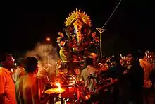 Sukhakarta Dukhaharta (literally "harbinger of happiness and dispeller of distress",[1] Marathi: सुखकर्ता दु:खहर्ता, sukhakartā duḥkhaharta), also spelled as Sukhkarta Dukhharta, is a popular Marathi arati,[2] song or bhajan (devotional song) dedicated to the Hindu god Ganesha, composed by the saint Samarth Ramdas (1608 - 1682 CE).[3][4] It is included in the "most standard and almost universal" arati songs sung at the end of Puja (worship rituals) of Ganesha in Maharashtra, especially in his festival Ganesh Chaturthi as well as in Ganesha temples in the region.[1][4][5]