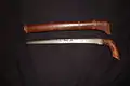 - Badik (ᨅᨉᨗ)[Mks] or Kawali (ᨀᨓᨒᨗ)[Bug] A badik is a knife with a specific form developed by the Bugis and Makassar. The Badik is sharp, single or double sided, and has a length of about half a meter. Like with a kris, the blade shape is asymmetric and often decorated with prestige. However, different from the kris, the badik never had a ganja (buffer strip). Some versions from Sulawesi are decorated with inlaid gold figure on the blade called jeko. The handle is made of wood, horn or ivory in a shape of a pistol grip at a 45° to 90° angle and is often decorated with carvings. From Sulawesi, the badik soon spread to neighbouring islands like Java, Borneo, Sumatra, and as far as the Malay Peninsula, creating a wide variety of badik according to each region and ethic group.