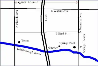 Sulphur Springs Water Tower is a landmark of Tampa, Florida. It stands 214 feet (65 m) tall, with a foundation 45 feet (14 m) deep which makes it visible from nearby Interstate 275 and much of the rest of Sulphur Springs.[1] It's located in the historic district of Sulphur Springs.