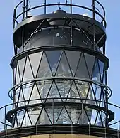 The lighthouse was built by Robert Stevenson in 1821 and is the oldest lighthouse in Shetland.[1] From 1906 until 1987, there was also an active foghorn,[2] which is traversable in azimuth. This replaced a fog bell which had been presented after the loss of the Royal Victoria in 1864. The bell now hangs in the parish church at Dunrossness.[2] The light was automated in 1991 and the keepers' houses were converted into holiday accommodation. The foghorn was restored in 2015 and sounds on special occasions. The lighthouse complex also has offices for the RSPB who look after the bird reserve which surrounds the lighthouse.
