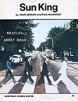 "Sun King" is a song by the English rock band the Beatles from their 1969 album Abbey Road. Written primarily by John Lennon and credited to Lennon–McCartney, it is the second song of the album's climactic medley. Like other tracks on the album (notably "Because") the song features lush multi-tracked vocal harmonies, provided by Lennon, Paul McCartney and George Harrison.