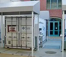 Sun Modular Datacenter (Sun MD, known in the prototype phase as Project Blackbox) is a portable data center built into a standard 20-foot intermodal container (shipping container) manufactured and marketed by Sun Microsystems (acquired in 2010 by Oracle Corporation). An external chiller and power were required for the operation of a Sun MD. A data center of up to 280 servers could be rapidly deployed by shipping the container in a regular way to locations that might not be suitable for a building or another structure, and connecting it to the required infrastructure.[1] Sun stated that the system could be made operational for 1% of the cost of building a traditional data center.[2]