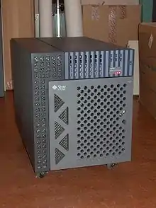 Sun Enterprise is a range of UNIX server computers produced by Sun Microsystems from 1996 to 2001. The line was launched as the Sun Ultra Enterprise series; the Ultra prefix was dropped around 1998. These systems are based on the 64-bit UltraSPARC microprocessor architecture and related to the contemporary Ultra series of computer workstations. Like the Ultra series, they run Solaris. Various models, from single-processor entry-level servers to large high-end multiprocessor servers were produced. The Enterprise brand was phased out in favor of the Sun Fire model line from 2001 onwards.