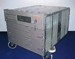 The 3000 model is a deskside server configurable with up to six processors and 10 internal disks, while the 4000 is a rack-mount system with up to 14 processors. The 5000 is essentially a 4000 in a rack cabinet and the 6000 is a cabinet-housed data center server with up to 30 processors.