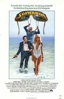 Sunburn is a 1979 British-American comedy detective film[2][3] directed by Richard C. Sarafian and written by James Booth, John Daly and Stephen Oliver. It is based on the novel The Bind by Stanley Ellin. The film stars Farrah Fawcett, Charles Grodin, Art Carney, Joan Collins, William Daniels and John Hillerman. The film was released on August 10, 1979, by Paramount Pictures.[4][5][6][7]