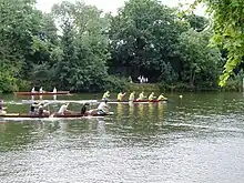 This regatta's many land activities takes place at Rivermead Island. Racing takes place on the Thames alongside from morning through to mid-and afternoon on the 'Sunbury and Hampton Reach' also known as 'Molesey Reach'.