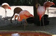 In 2016, Sunken Gardens acquired a new young flock of 20 flamingos from the San Antonio Zoo.[5][6] They joined elderly flamingo residents, George and Lucy, the two remaining Chilean flamingos from the original 17 bird flock that have been on exhibit since 1956. The new flamingos were purchased with funds raised by a nonprofit group, Flamingos Forever, composed of volunteers.[7][8] Additionally, the city purchased a $30,000 nighttime enclosure for the new flock. Flamingos Forever changed their name to Sunken Gardens Forever, after the acquisition of the new flock, and St. Petersburg Mayor Rick Kriseman named May "Sunken Gardens Forever Appreciation Month" in honor of their fundraising efforts.[9]