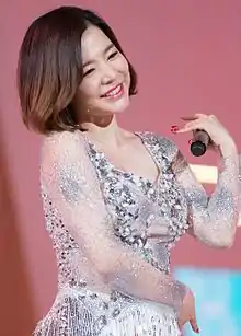 Aside from Girls' Generation's activities, Sunny has participated in a number of side-projects. In early 2008, Sunny worked as a co-host of the Melon Chunji Radio with Super Junior's Sungmin.[12][13] In August 2008, she contributed a solo song, "You Don't Know About Love" for the SBS's drama Working Mom.[14] In 2009, Sunny released two songs—a solo track "Finally Now" for the interactive movie Story of Wine and a duet "It's Love" for the MBC's drama Heading to the Ground, with Girls' Generation's member Taeyeon.[15][16] During 2009 and 2010, Sunny was a co-host for MTV Korea television music program The M with SS501's Kim Hyung-jun and 2AM's Im Seulong.[17] She also joined the KBS2's variety show Invincible Youth along with Girls' Generation member Yuri. The reality program narrated a journey of a group of South Korean celebrities who were brought together to work and experience the agricultural and rural life.[18] In March 2010, Sunny recorded "Your Doll" for the SBS's drama Oh! My Lady soundtrack—it became her first song to enter the Gaon Digital Chart, at number 88.[19][20] During 2011 and 2012, she continued on with her participation in KBS2's Invincible Youth 2.[21] She was praised by the director of the show as someone who has "intelligence", "great adaptability" and the ability to make other cast members get along well.[22]