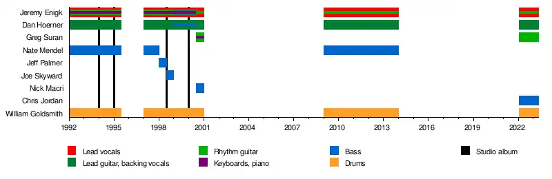 - Jeremy Enigk – lead vocals, rhythm guitar (1992–1995, 1997–2001, 2009–2014, 2022–present); keyboards, piano (1992–1995, 1997–2000); bass (1999–2000)