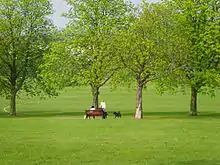 The site used to be Sunnyhill Fields, and was owned by Church Farmhouse, now the adjoining Church Farmhouse Museum. In 1921 Hendon Council purchased 16 acres for a park, which opened in 1922, and in 1929 it was enlarged when further land was acquired.[4] An area with scattered trees in the south-east corner was formerly part of St Mary's Churchyard, an important archaeological site with evidence of Roman and Anglo-Saxon occupation.[5] The park still has hedgerows showing former field boundaries and mature trees.[4]