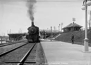 ![]() Looking west along the station platform in 1915 | ||||||||||||||||||||||||||