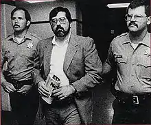 ![]() Perpetrator Richard Farley being escorted by police officers | |