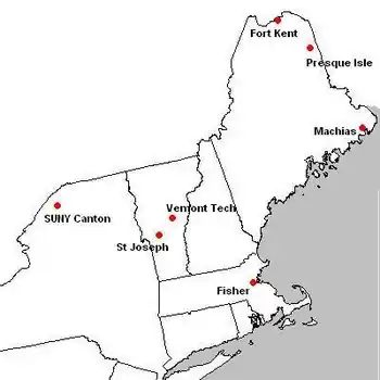 The conference disbanded in 2011 when the College of St. Joseph, Vermont Technical College and the University of Maine at Machias left the conference and the NAIA for the United States Collegiate Athletic Association (USCAA) and the Yankee Small College Conference (YSCC).[3][4] The University of Maine at Fort Kent, the University of Maine at Presque Isle, and the State University of New York at Canton then left with no regional NAIA competition to become independents in the USCAA.[4]