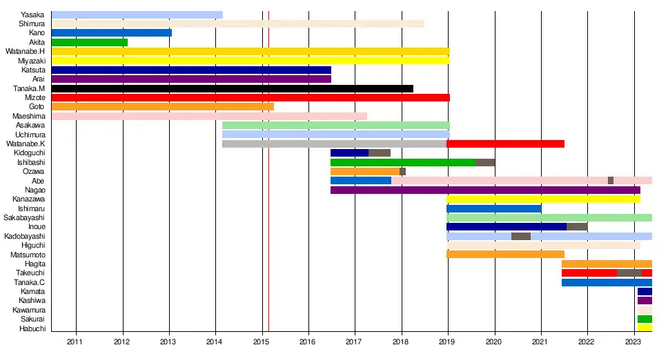 | Honoka Hagita(萩田帆風) | Pipi (ぴぴ / Pipi), Honoka-chan (ほのかちゃん / Honoka-chan) | 29 September 2000 | 22 | Shizuoka | Sweet Orange (R240 G131 B000) | Chapter 5 Member, Sub-leader | 12 June 2021 | Former Avex Management Actress |