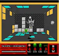 Energy balls appear and fly around the room, bouncing off of the walls, somewhat like the game of squash. When the ball hits a tile on a wall, that tile is destroyed. The player must keep the ball in play and destroy the tiles by hitting, throwing, and punching the ball around the room. The player cannot let the ball go behind the glove; if this happens, it will be destroyed, and a new one will appear. If the player loses 5 balls, a life will be lost. When all lives have been lost, it's game over, and there are no continues. The player also has a finite number of Robo-Bullets that the glove can shoot out of its index finger by pressing the "select" button. These can destroy tiles with one hit, and they can also be used to attack enemies.
