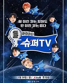 Super TV (Korean: 슈퍼TV; RR: Syupeo TV) is a Korean variety show by Super Junior distributed by XtvN and tvN. The show airs on Xtvn every Thursday at 08:00 PM KST[1] and tvN every Friday at 6:40 PM KST. Originally it was on air on both stations every Friday at 11:30 PM KST before being moved on June 7, 2018.[2]