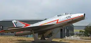 The SMB2 was assigned to three fighter squadrons (5th, 10th and 12th) starting in May 1958. In November 1977, the last SMB2 of the 1/12 Cambrésis fighter squadron made its last flight, thus closing 19 years of service with the Armée de l'Air. About fifteen aircraft from this squadron were then assigned to the Rochefort air technician school. Aircraft no.90 12-YQ was assigned to the Cité de l'Air Military Training Center, at 122 Chartres-Champhol Air Base.