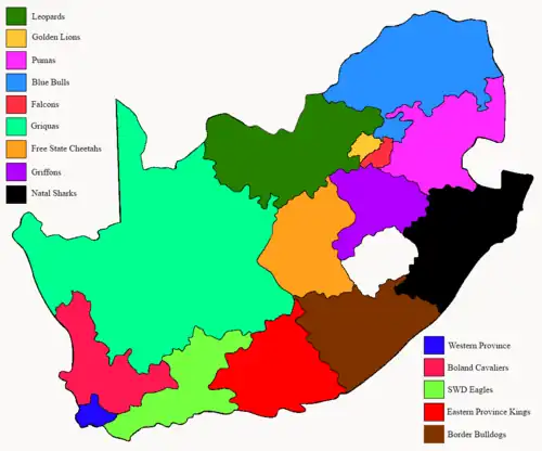 South Africa operated its Super Rugby system in basically the same manner as in New Zealand, with each franchise linked with one or more unions in the country's domestic competition, the Currie Cup and the Vodacom Cup (its development competition). During the 1996 and 1997 Super 12 seasons, South Africa entered their 4 top finishers in the previous season's Currie Cup. The franchises were created for the 1998 season.